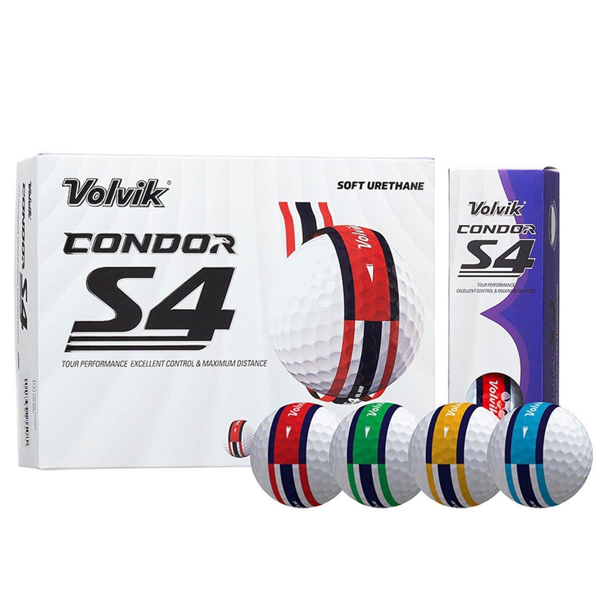 Volvik Condor S4 Tour Soft 360 12 Golf Ball PackKey Features - 360 Alignment Lines Premium 4-piece BallSoft Feel Urethane CoverCarbon Dual Power CoreCarbon Speed MantleDouble Flat Dimple PatternCompression 90The Volvik Condor S4 golf ball provides tour performance with a soft feel. The ball has a premium 4-piece construction and a soft feel urethane cover to ensure maximum distance and greenside control. Featuring a Hyper white carbon dual power core and white carbon speed mantle. White carbon technology applied to the core and mantle boosts elasticity for greater distance performance. The double flat dimple pattern improves flight stability and provides a mid-high ball flight trajectory. Complete with 360 alignment lines to assist with putting.