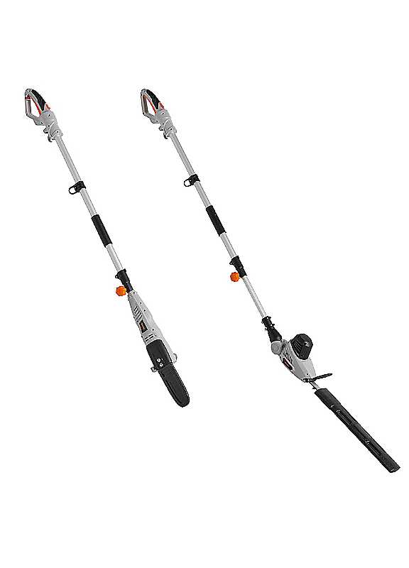 VonHaus 2-in-1 pole chainsaw trimmer. Take away the arduous aspect of gardening with this electric 2-in-1 tool. Equipped with a trimmer and chainsaw, you'll be able to effortlessly trim and cut through hedges, branches, brambles, shrubs and thick overgrowth. This powerful pole hedge trimmer and chainsaw has the advantage of a 1500rpm no-load speed, impressive 460W performance and adjustable cutting head. Easily tackle high and hard-to-reach hedges, branches, brambles, shrubs and thick overgrowth. Adjust the length of the pole to help manage hedges of varying heights and angle the head to suit the line of your cut.The chainsaw offers a powerful 750W performance with an 8ins (20cm) Oregon chain and bar and chain speed of 11m/s. Meanwhile, the extra-long 10m cable, allows you to move around your garden effortlessly. For comfort, balance and safety, there's a dual support harness which anchors to your torso at two separate points to effectively counterbalance the top heavy design. An invaluable tool for every keen gardener.Pole trimmer power: 460WChainsaw power: 750WChain speed: 11m/sChain and bar: 8insBlade cutting width: 16 mm, length 450 mmNo-load speed: 1500rpmHedge trimmer dimensions approx. 273.5L (extended) x 209L (not extended) x 22.5W x 18.5 cm dia. Chainsaw dimensions approx. 240L (extended) x 173L (not extended) x 22.5W x 20 cm dia.