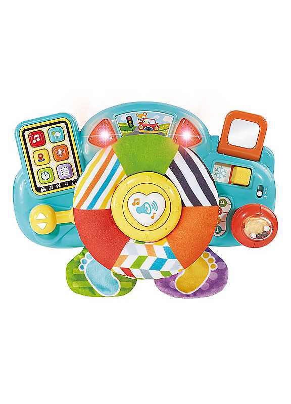 Cruise through playtime with the Beep Beep Baby Driver by VTech®! Put baby in the driver's seat with this exciting driver that attaches to pushchairs. Discover cool car features with fun songs and phrases whilst playing sitting down or on-the-go! Bright multicoloured car parts attract attention, encouraging baby to explore 8 activities! Press the 6 control panel buttons for fun role-play phrases, including weather, traffic updates and more! Spin the brightly coloured fabric steering wheel, slide the temperature control switch and push the squeaky horn button! Twist the self-discover mirror, feel the soft crinkle pedals, slide the indicator and the gear stick too! Brand: Vtech Age suitability: 6-24 Months Interactive driver toy that attaches to pushchairs Includes 8 fun features with playful songs, music & phrases Play with sitting down or on-the-go Press the 6 control panel buttons for fun role-play phrases, including weather, traffic updates & more Manipulative features include: Fabric steering wheel, temperature control switch, squeaky horn button, self-discover mirror, soft crinkle pedals, indicator & gear stick