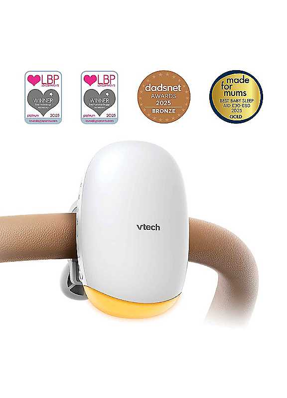 Soothe your little one effortlessly with the VTech V-Hush Rocker Sound and Motion Stroller Soother-your on-the-go solution for a peaceful ride. Designed with a secure and flexible mounting system, it easily attaches to your stroller, with two included mounts so you can switch between strollers without hassle. The gentle vibration motor mimics the comforting motion of a stroller being rocked, helping lull your baby into a restful state. With a powerful rechargeable battery providing up to nine hours of operation, an auto-off timer for 30- or 60-minute cycles, and a soft amber night light, the V-Hush Rocker ensures a soothing experience wherever you go. Plus, its IPX2 drip-proof design means you're covered, rain or shine.Versatile and Flexible Mounting System - Secure and durable mounting system that quickly attaches to your stroller and allows the Rocker to be easily clipped and unclipped from the mount. Two mounts are supplied so you can use the Rocker on two strollers without having to remove the mount.The Vibration Motor Gently Rocks Your Stroller - The internal motor creates a gentle rocking motion when attached to a stroller using the versatile mount.Powerful Rechargeable Battery - 2600mAh battery allows up to nine hours of operation. *Ready for the outdoors - IPX2 level drip proof design, safe for use even if you are caught out in the rain.Auto-off timer - Pre-set rocking cycle duration of 30 or 60 minutes.Amber night light - Built-in night light. Activate for a gentle and soothing illumination.