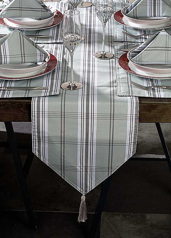 Waterside 13 Piece Grey Tartan Table Runner Placemats Napkins Set