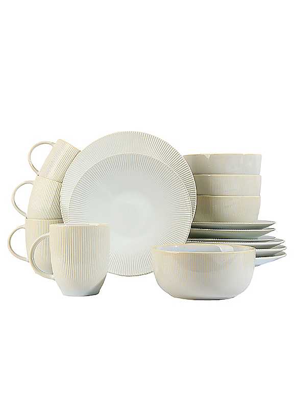 Waterside 16 Piece Reactive Glaze Cream Dinner Set