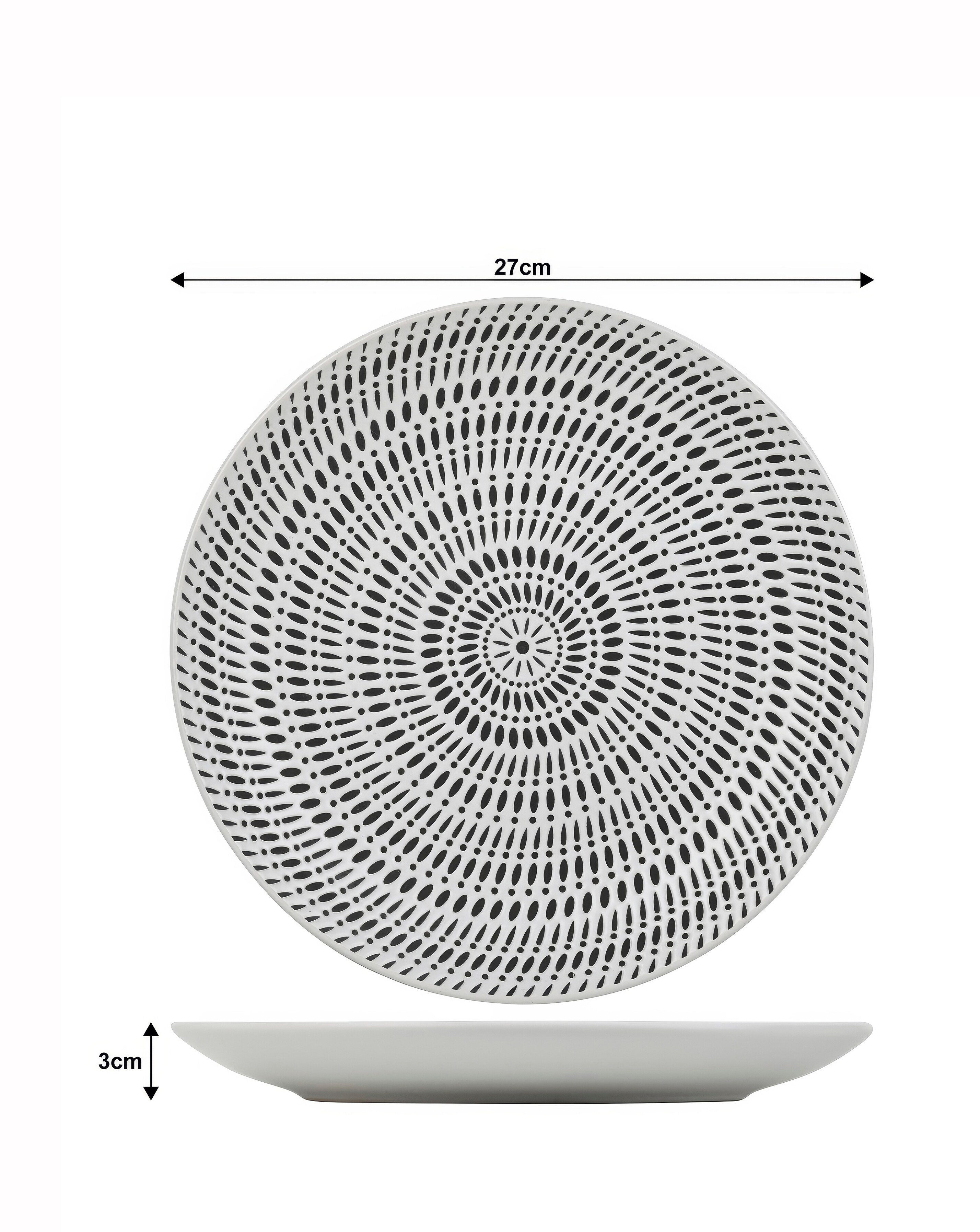 Waterside White Pad Print 16 Piece Dinner Set comes with 4x 10.5inch Dinner Plate, 7.5inch Side Plate, 6inch Deep Bowl, 8inch Soup Bowl. Dishwasher and Microwave Safe.
