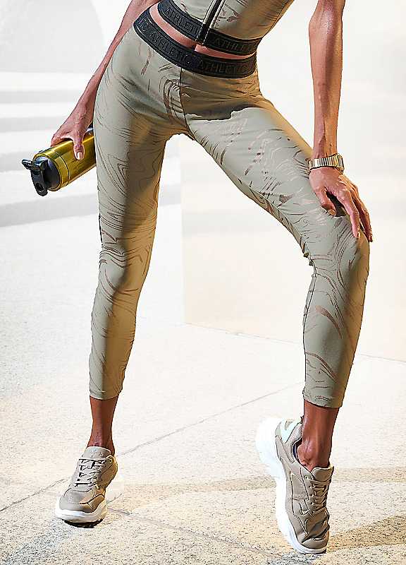 Elevate your workout wardrobe with our Functional Leggings featuring a black waistband with 3D lettering for a bold touch. Made with elastic and breathable functional material, these sports leggings provide comfort and support while the shiny print and 3D lettering add a stylish element. With a high waistline and ankle length, these leggings offer full coverage and a flattering fit. Complete your look with our Hooded Sweatshirt in an abstract pattern for a coordinated and chic ensemble.Black waistband with 3D letteringElastic & breathable functional materialSports leggings with shiny print & 3D letteringMachine washable85% Polyester, 15% Elastane