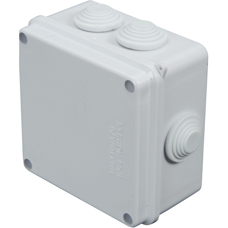This Wessex IP65 Moulded Enclosure provides robust protection for your electrical connections. The unit is designed to safely house wiring in a durable case. * Provides an IP65 rating – protects components from dust ingress and low-pressure water jets * Available in a choice of dimensions and entries – including 100 x 100 x 50mm with 6 entries, 150 x 110 x 70mm with 10 entries, and 190 x 140 x 70mm with 10 entries | Wessex Electrical IP65 Moulded Enclosure 100 x 100 x 70 mm 7 Entries in White