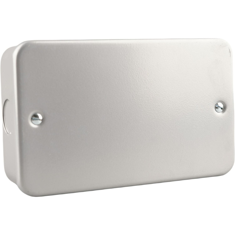When you need to safely cover a redundant electrical outlet, this Wessex Metal Clad Blank Plate provides a tough and durable solution. The robust metal construction makes it ideal for use in workshops and garages where it can withstand impacts. This plate comes complete with a surface-mounted back box, making it easy to install over an existing cutout. It ensures that any unused wiring points are safely enclosed and protected. * Metal clad construction – for a tough and impact-resistant finish * Safely covers outlets – conceals unused wiring points * Includes back box – for easy surface-mounted installation * Available in 1 and 2 gang sizes | Wessex Electrical Metal Clad Blank Plate with Back Box 2 Gang in Silver