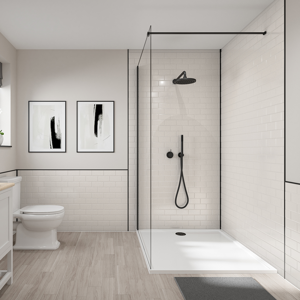 Wetwall Concept White Vertical Orientation Tile 2 Sided Shower Panel kit - 1200 x 900mm - Our composite range of shower panels are made from a super strong, completely waterproof composite, that has a stunning embossed tile effect.