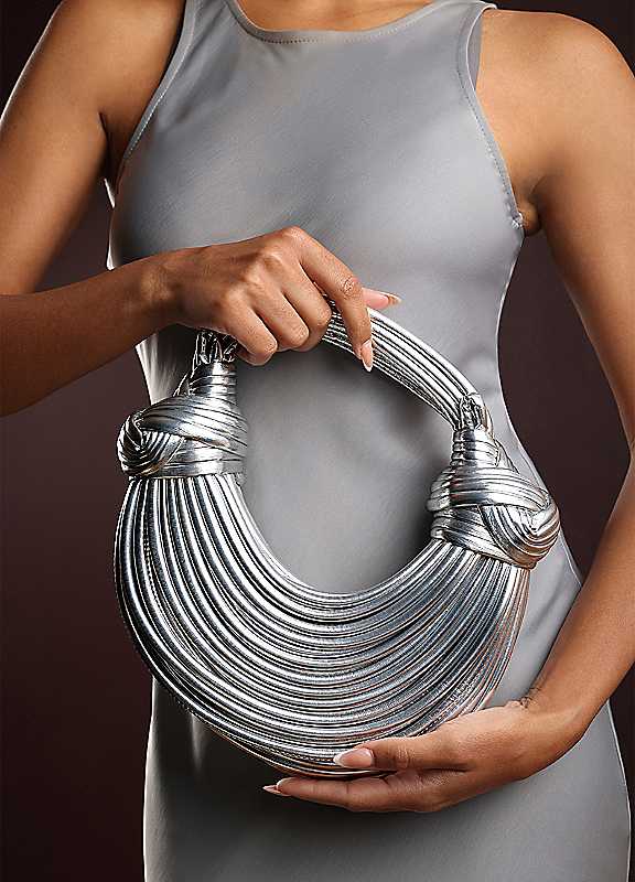 Where's That From Blossom Curved Silver Metallic Shoulder Bag