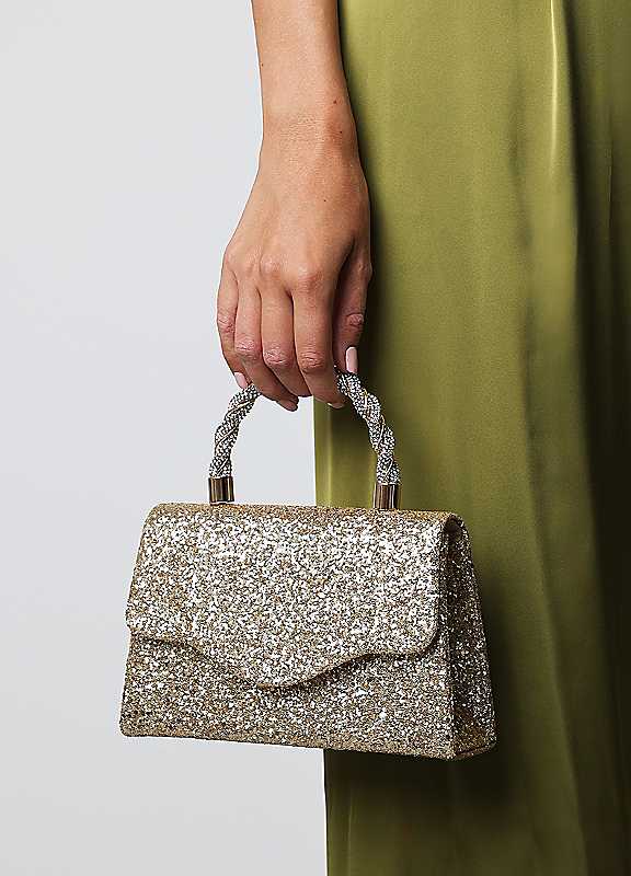 Where's That From Pluie Gold Glitter Braided Handle Evening Bag