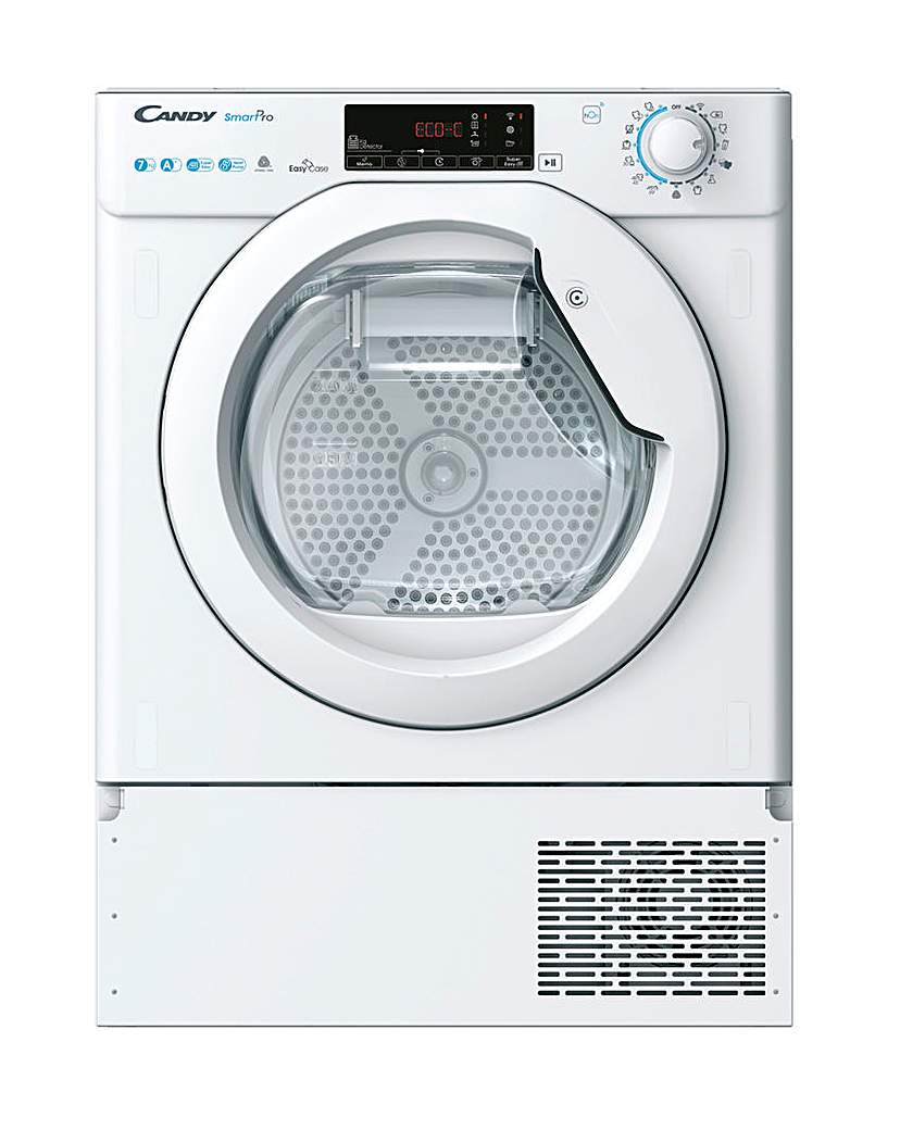 Introduce cutting-edge convenience into your laundry routine with the Candy Bctd H7A1Te-80 Dryer, a built-in appliance designed to integrate seamlessly into your home with style and functionality. Offering a 7 Kg capacity, this dryer is the perfect addition for smaller households, balancing size and performance with precision. Rated Class A+ for energy efficiency, it incorporates a Heat Pump System that delivers outstanding drying results while minimising energy consumption. The advanced Wi-Fi + Bluetooth connectivity enables remote control and access to extra content, allowing you to tailor your drying cycles from anywhere, enhancing your convenience through smart technology. Experience ultimate ease with the Easy Iron feature, which reduces creases for less ironing time, and the EasyCase, a convenient system for water collection. The High Door Hole design provides effortless accessibility for loading and unloading your laundry, making everyday tasks simpler. With an array of 15+1 drying programmes, including a specialised Wool program, this dryer caters to all fabric needs, ensuring each garment receives the tailored care it requires. The Start Delay feature adds further flexibility, allowing you to schedule dryer operation at your convenience, while the Smart Check-up system maintains optimal performance and long-term reliability. Key Features: Wi-Fi + Bluetooth Connectivity: Remote control and access to extra content, Heat Pump System: Energy-efficient drying, Easy Iron: Less creasing for minimal ironing, EasyCase: Convenient water collection, High Door Hole: Easy access for loading, Model: Bctd H7A1Te-80, Colour: White, Type: Built-in, Capacity: 7 Kg, Energy Efficiency Class: A+, Number of Programmes: 15+1