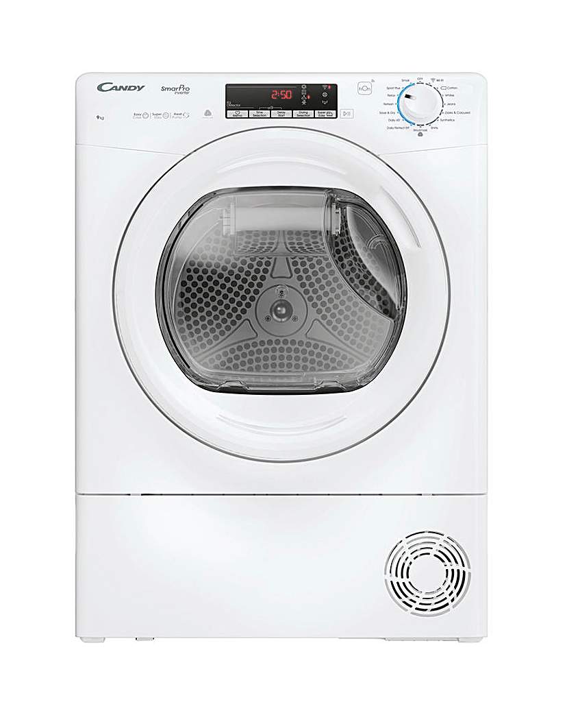 This product includes our Installation & Recycling service. Candy 9kg Load Capacity Heat Pump dryer, this technology provides extremely high energy efficiency as well as excellent drying performance. With an A+++ energy rating, it heats the air utilising refrigerant instead of electricity, which means that it consumes significantly less power than conventional condenser tumble dryers and ensures no energy is wasted. Featuring clever Sensor Dry technology allows you to set the level of dryness you require, and the dryer then switches off automatically when this level of dryness has been reached. Choose from Extra Dry, Store Dry, Hang Dry and Iron Dry. It also comes with 14 Programs, including a Wool Program and a few Rapid Programs that are ideal for smaller loads. With Wi-Fi connectivity, you can download additional programs, operate remotely, get clever energy look-ups, and it even helps with diagnostics. It comes with Aquavision, a unique, patented water reservoir built right into the tumble dryers door. The ergonomically designed Aquavision makes it easy to see when the water needs emptying and has a convenient handle, making it easy to remove for emptying and carry in the same way as a small bag. The tumble dryer benefits from having an extra-large porthole, making it easy to load and empty, reducing the stress on your body. Sensor Dry, Heat Pump Technology, 8kg Capacity, Wi-Fi Connected, Start Delay, Wool Program, Rapid Programs, Large Porthole, Aquavision water collection in the door. 1 Year Labour, 10 Years Parts Guarantee.