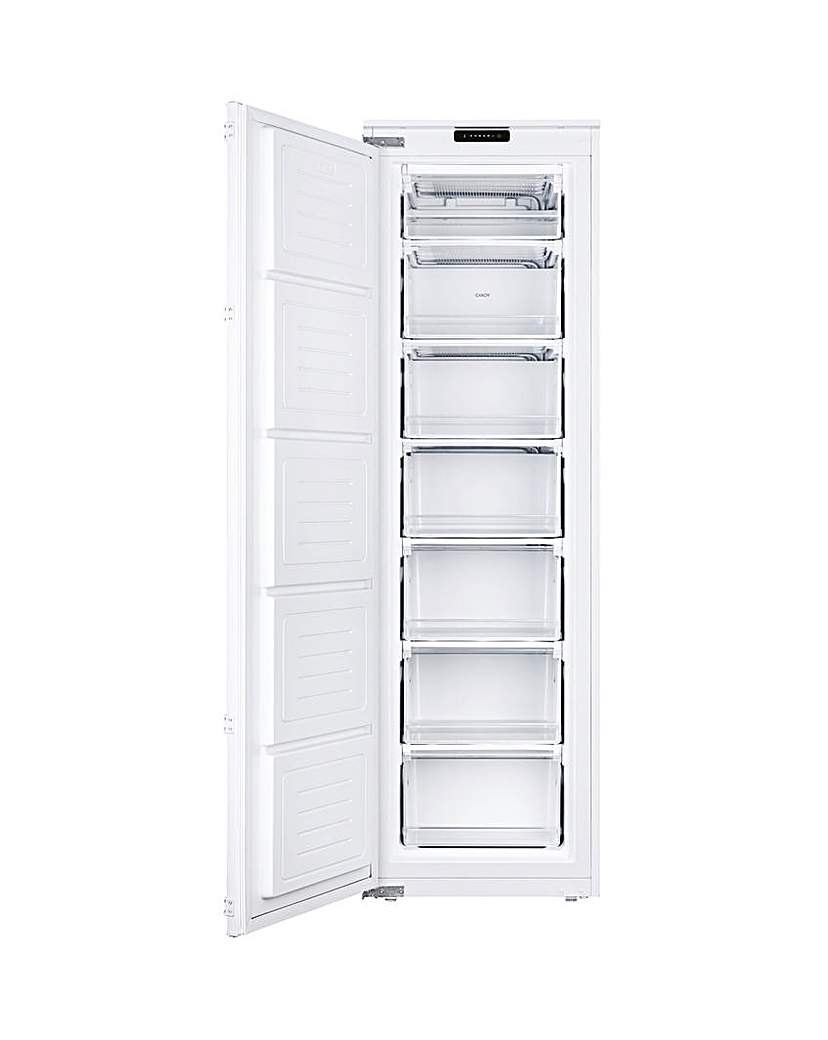 At 55cm width, Hoover's Upright 55 freezer offers great storage capacity and an intuitive electronic control that makes it easy to adjust the freezer's settings from the outside. This integrated freezer slots seamlessly into your kitchen for a clean, modern look. It's made to match your units, so everything lines up perfectly. Great for saving space and keeping things sleek. And thanks to the Power Failure Safe feature, there's no danger of the desserts defrosting during a blackout. That's because it stays cold for up to 11 hours without electricity. Plus, the reversible door means you'll have no trouble fitting it in with the rest of your kitchen. 204 litre capacity - Holds 11 bags of food shopping, Power Failure Safe - Lasts 11 hours without electricity, Reversible door - To suit any kitchen layout, Integrated design