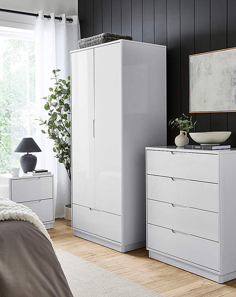 The Ellia 4 Piece Package includes: 2 Ellia side tables, an Ellia small chest of Drawers, and an Ellia Double Wardrobe.