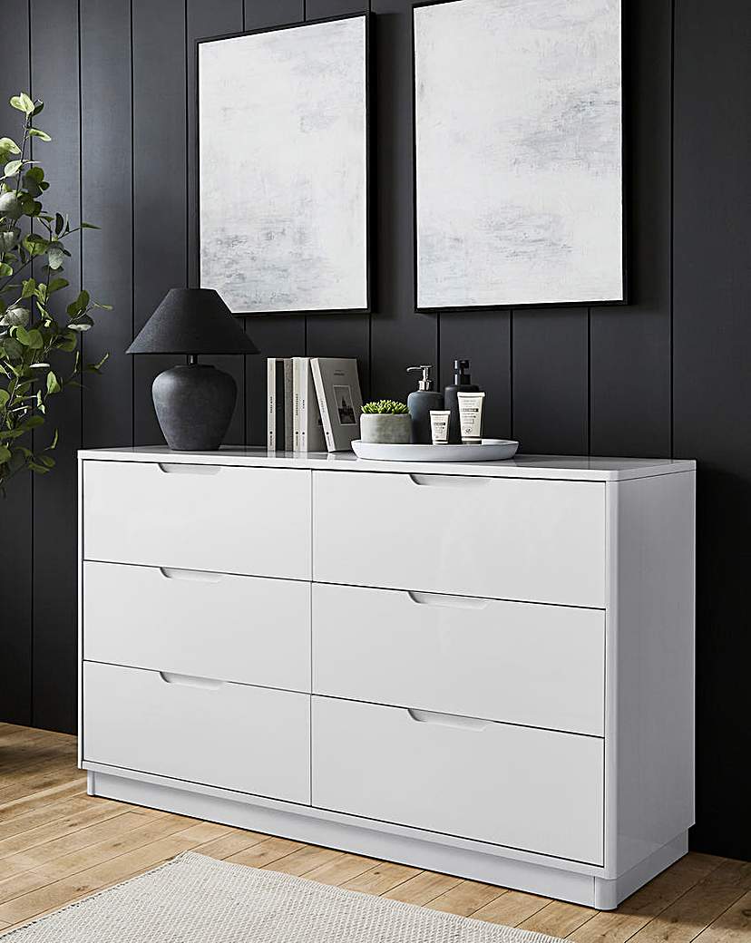 Ellia Large Chest of Drawers. 6 drawers, finished in a White colour