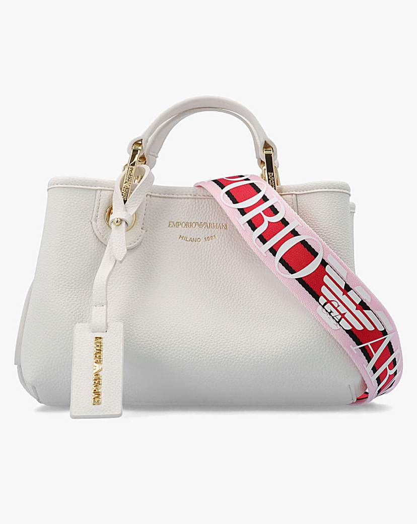 Emporio Armani X Small White Cross-Body Shopper Bag This Emporio Armani X Small White Cross-Body Shopper Bag is the perfect day bag style. Crafted from a premium thermoplastic polyurethane in a deer-print finish with polished gold tone accents. The secure magnetic snap fastener allows access to the main compartment with handy inner slot pocket. Carry by the top handles or go hands free with the detachable logo webbed strap. Classic logo luggage tag adds detail. Signature Emporio Armani branding completes the design. Technical information: Deer-Print Finish, 100% Thermoplastic Polyurethane, Gold Tone Hardware, Top Handles, Detachable Webbed Logo Strap, Magnetic Snap Fastening, Central Slot Pocket, Logo Luggage Tag, Emporio Armani Branding, Includes Dust Bag Dimensions: L21 x H16 x D8 CM