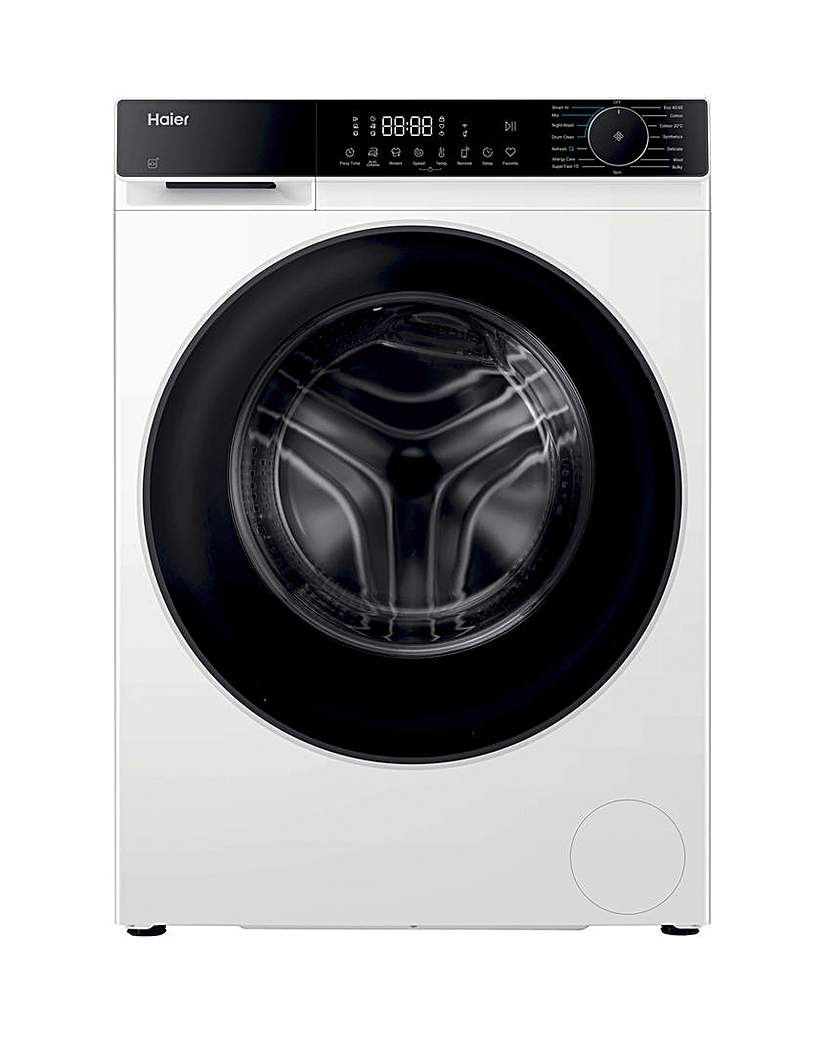 Your Laundry, Your Way: With the Haier Hw100-Bp14357Uuk Washing Machine with Installation, enjoy the freedom and ease of personalising every wash experience to match your individual needs - ensuring your clothes receive the care they deserve. Transform the way you handle laundry with the Haier Hw100 Washing Machine. This freestanding powerhouse has a generous 10 Kg capacity, designed to meet the demands of modern households. Engineered for endurance, it promises to last up to 20 years while providing efficient washing with its 1400 RPM Engine Inverter Bpm. Rated A -20% for energy efficiency, it blends high performance with eco-friendliness. Harnessing the power of the Smart AI Cycle, it intuitively adjusts each wash to the fabric and load size, providing gentle, custom care for every garment. The Wi-Fi connectivity feature, powered by the hOn App, puts wash control at your fingertips, letting you tailor each cycle to fit your lifestyle. Experience the versatility of Intelli Wash Smart Technology: whether you're in a rush, you can select the Rapid Wash; for energy savings, the Eco Wash is perfect, and for deep cleaning, choose the Intense Wash for tough stains. With Smart Dual Spray, your washing machine remains clean and bacteria-free, automatically rinsing the door and gasket to prevent residue build-up and eliminate odours, ensuring pristine laundry every time. Model: Hw100-Bp14357U1, Colour: White, Load Capacity: 10 Kg, Type: Freestanding, Spin Speed: 1400rpm, Energy Class: A -20%, Number of Programs: 15, Wi-Fi Connectivity: Yes, Smart AI Cycle: Yes