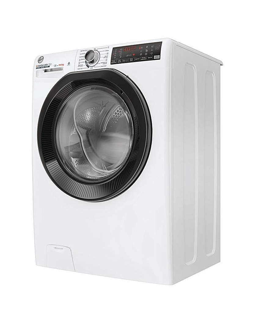 This product includes our Installation & Recycling service. This Hoover H-Wash&Dry 350 washer dryer is perfect for larger families, with a 9kg wash capacity (equivalent to 45 shirts) and 6kg drying capacity (equivalent to 30 shirts). The washing cycle is rated A for energy, meaning it is super efficient, saving you money compared to a B or C class washing machine. Its packed with innovative features too, which are designed to protect and care for your clothes, and its clever, connecting to your phone via the hOn app. This means you can monitor your load, control the machine, and even download additional programmes. KG Mode uses built-in sensors which weigh the load and automatically adjust water use and time of the cycle, saving energy and making the wash more efficient. There are 15 programmes, including quick wash in 14 minutes, active steam and All in One. The washing technology is rated A for energy use, the best in class. Drying is via a condenser system, and there is a clever sensor dry function built in - this means you can set the required drying level of your choice, and the machine will stop the cycle when this level is reached. This means you have more control, preventing over-drying and reducing energy use. This washer dryer also has a 1400 spin speed, meaning drying takes less time and uses less energy as a result. There is also a built-in start delay, which helps you set the machine to come on when the price of energy is cheaper, saving money on your bills. 9kg Washing Capacity, 6kg Drying Capacity. 1400 rpm Variable Spin Speed. Up to A-10% Energy Class. hOn app. The 14-minute quick wash takes care of small loads in no time - fantastic for those extra busy days. Dry your laundry without worrying about it shrinking thanks to the 3 drying temperatures. 1 Year Labour, 10 Years Parts Guarantee.