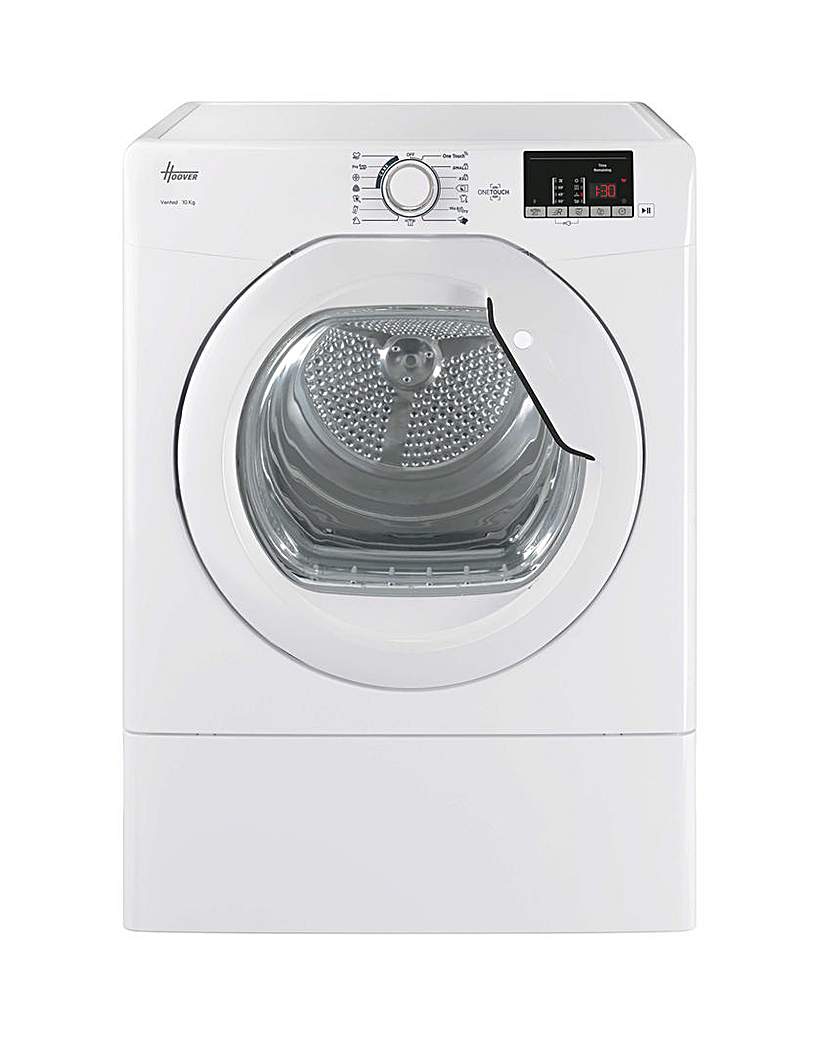 This product includes our Installation & Recycling service. Hoovers 10kg Large Capacity Vented dryer, featuring clever Sensor Dry technology, allows you to set the level of dryness you require, and the dryer then switches off automatically when this level of dryness has been reached. Choose from Extra Dry, Store Dry, Hang Dry and Iron Dry. It also comes with 14 Programs, including a Wool Program and a few Rapid Programs that are ideal for smaller loads. With Wi-Fi connectivity, you can download additional programs, operate remotely, get clever energy look-ups, and it even helps with diagnostics. It comes with Aquavision, a unique, patented water reservoir built right into the tumble dryers door. The ergonomically designed Aquavision makes it easy to see when the water needs emptying and has a convenient handle, making it easy to remove for emptying and carry in the same way as a small bag. The tumble dryer benefits from having an extra-large porthole, making it easy to load and empty, reducing the stress on your body. Sensor Dry, 8kg Capacity, Wi-Fi Connected, Start Delay, Wool Program, Rapid Programs, Large Porthole. 1 Year Labour, 10 Years Parts Guarantee.