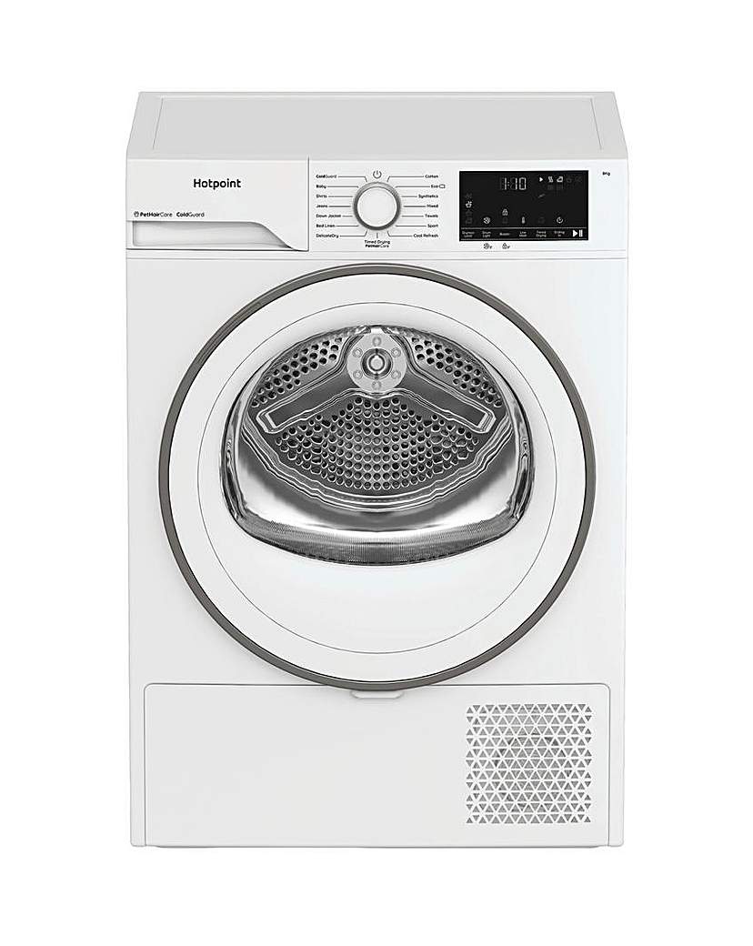 Keep your clothes looking their best, come rain or shine, with this Hotpoint heat pump tumble dryer. Finished in classic white to suit any home, it has a family-friendly 8kg capacity to get those big loads dry with ease. Thanks to energy-efficient Heat Pump technology, your clothes are dried gently at lower temperatures - using up to 77% less energy (Compared to condenser tumble dryers of B energy class) while helping to protect fabrics and reduce your bills. A must-have for any pet-loving home, the dedicated PetHairCare cycle uses a burst of steam to relax fibres and reduce static, helping pet hair lift away and get trapped in the filter - so laundry comes out fresh, clean, and hair-free. For clothes that need a gentle touch, DelicateDry uses lower temperatures to help protect fabrics so they stay looking their best for longer. Maintenance is simple too. The Easy Clean Filter combines the lint and condenser filters into one, built right into the door. It catches even the tiniest bits of fluff, and with a quick clean, your dryer stays running smoothly. And if youre short on indoor space, this model is designed to work efficiently in temperatures as low as 0C, making it a great fit for garages and outbuildings. Pet Hair Care/ColdGuard/Heat Pump Technology/Easy Cleaning Filter/Delicate Dry/Inverter Motor. With our installation & recycle service, we will provide positioning of the product in the room of your choice and removal of packaging, disconnection of your old appliance and connection of new one with a basic test of the machine. We will then take your old appliance away and dispose of it in a safe and responsible way.