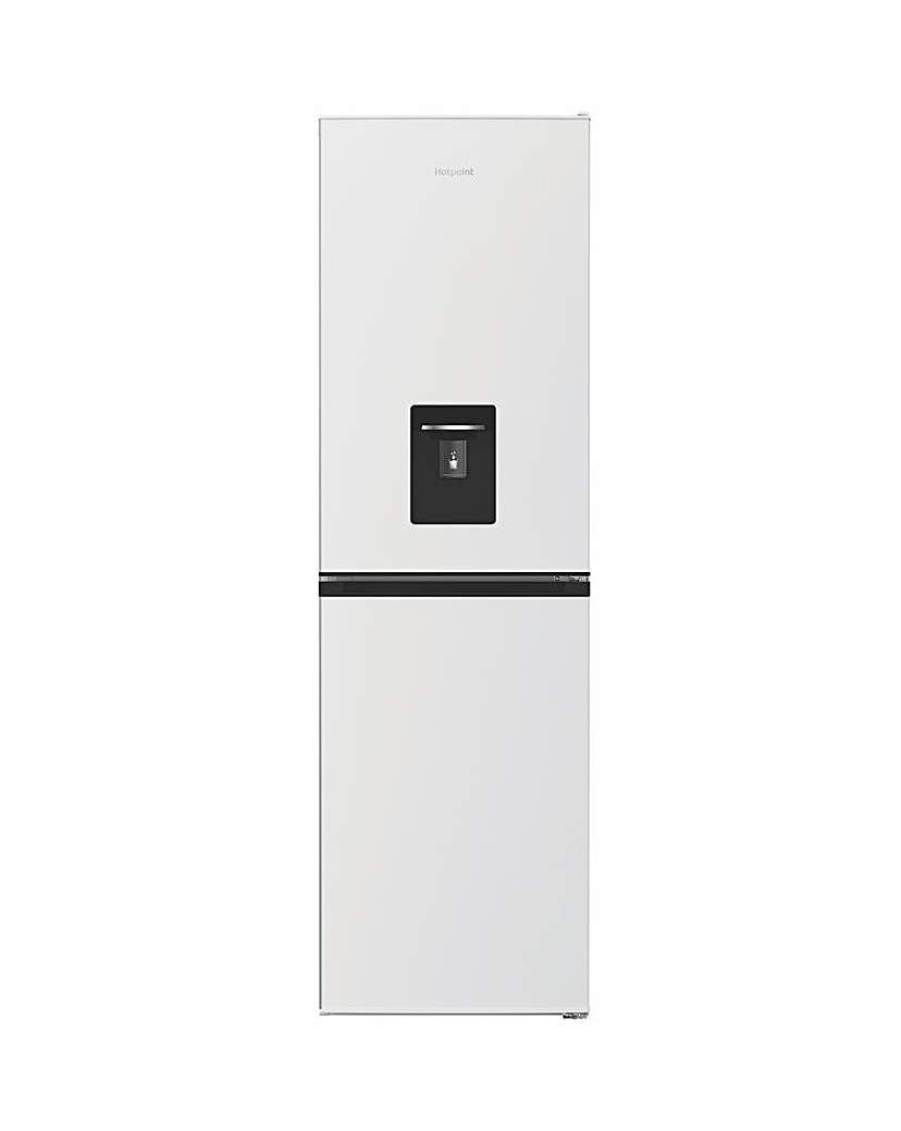 This Hotpoint freestanding 50/50 fridge freezer in classic white features thoughtful technology that keeps your food fresh and prevents waste. With a spacious capacity of 270L, it provides ample space for 15 shopping bags, so you can easily fit all your groceries in. Our clever No Frost technology ensures a constant airflow inside the freezer, so you'll never have the dreaded chore of defrosting it. Inside you'll find a dedicated Fresh Zone drawer, which maintains the correct temperature for crisp salad and long-lasting vegetables, while adjustable shelves give added flexibility to accommodate larger items effortlessly. Bright LED lighting illuminates the interior of your fridge so you can see everything clearly, and the reversible door design lets you position it perfectly in your space. Outside, the integrated water dispenser lets you quench your thirst instantly with quick and easy access to chilled water. No Frost - No Frost ensures a constant air flow inside the freezer so you'll never have the dreaded chore of defrosting it. Fresh Zone - The Fresh Zone is a dedicated drawer that maintains the correct temperature for crisp salad and long lasting vegetables. Adjustable Shelves - Keep your fridge organised. Water Dispenser - Count on Hotpoint to quench your thirst with quick and easy access to chilled water. LED interior lighting - Brighten up the contents of your fridge. Energy efficiency E, Capacity 270L, Split 50/50, 1 Year Labour/10 Years Parts Guarantee