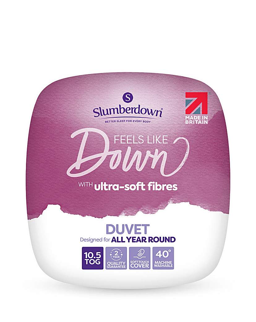 The Slumberdown Feels Like Down 10.5 Tog Duvet is ideal for allergy sufferers with its non-allergenic properties. This luxurious duvet is comfortable, with its microfibre cover that is soft and cool to touch. The cosy yet lightweight hollowfibre filling feels just like premium quality down and will keep you snug all night long. Made in the UK.