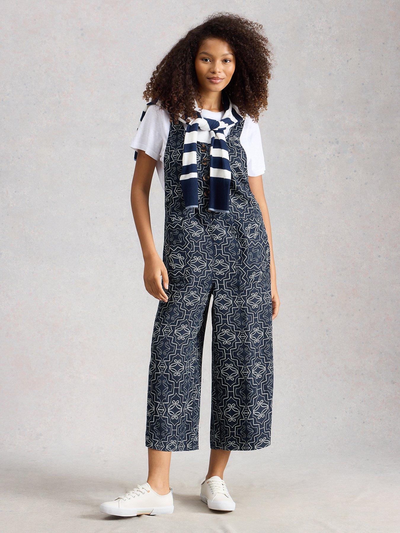 White Stuff Viola Linen Dungaree Size & Fit True To Size - Order Your Usual Size Regular Fit Cropped Length Available In Sizes 8 - 18 Details Viola Linen Dungaree By White Stuff Navy Breathable Linen Fabric All-Over Geometric Print Sleeveless Round Neck Button Front Material & Care Material Content: 100% Linen Washing Instructions: Machine Washable