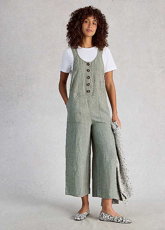 Linen chambray dungarees with roomy pockets and statement buttons. Just add white trainers and a t-shirt.Machine washable100% Linen