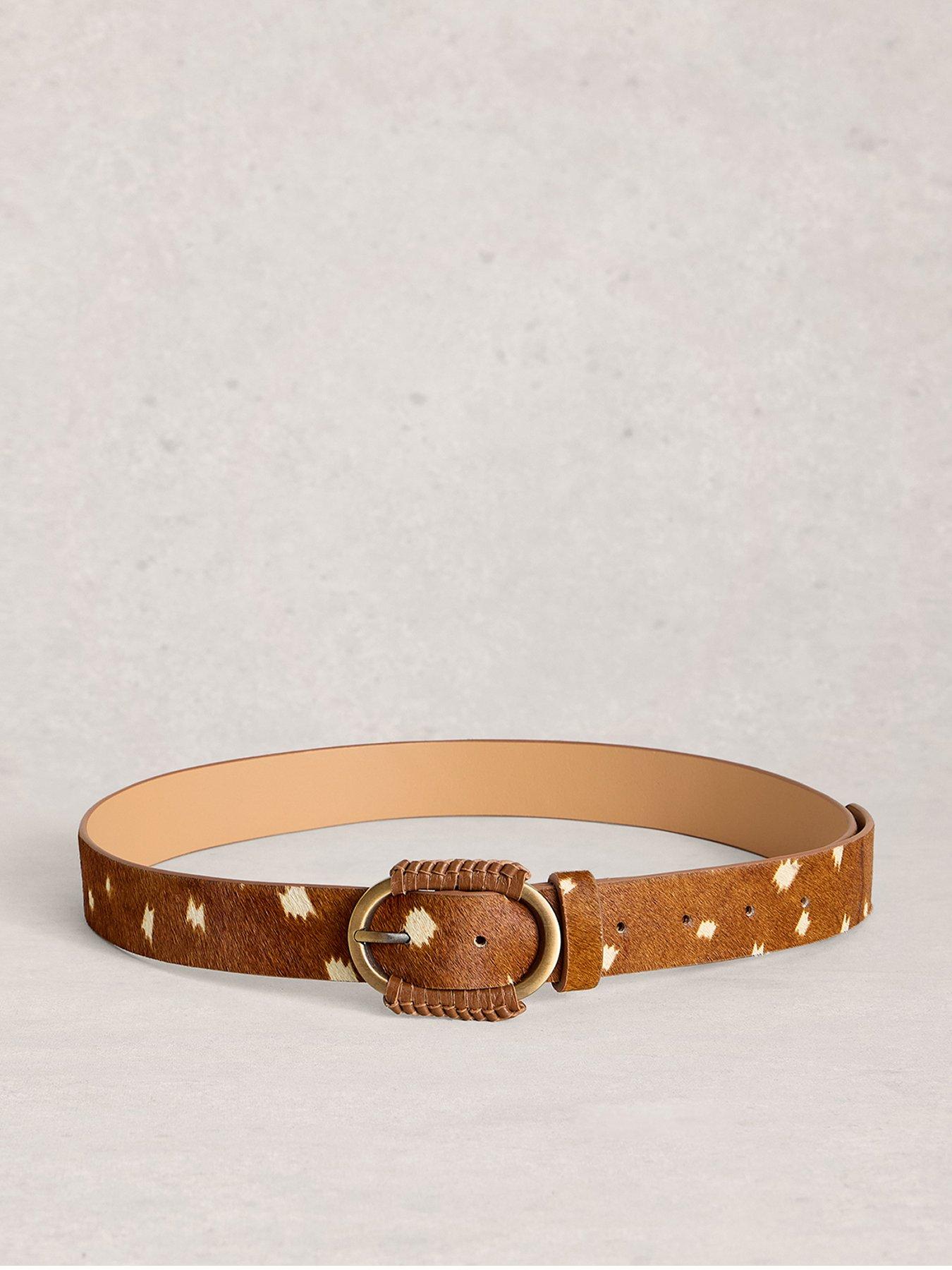 White Stuff Wrapped Buckle Belt Size & Fit Available In Sizes S/M- M/L Details Wrapped Buckle Belt By White Stuff Brown Oval Buckle With Pin Fastening Single Keeper Loop Wrapped Buckle Detail Animal Print Material & Care Material Content: 100% Leather