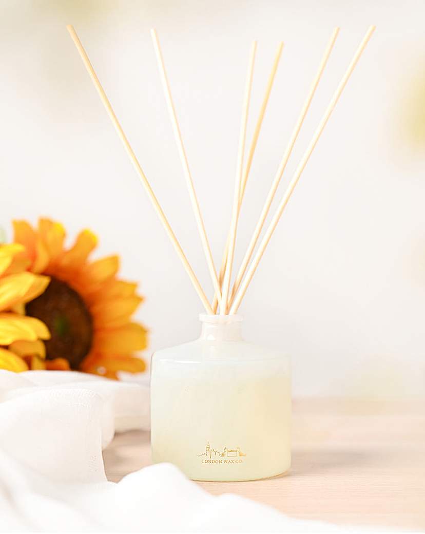 Fill your space with the fresh, uplifting scent of our Floral Fields Diffuser from The London Wax Company.This elegant glass bottle is packed with beautifully scented oil and comes with wooden reeds to gently release the fragrance. Packaged in a crisp white box with a floral design, it is the perfect gift, or a lovely way to treat yourself to the scent of a blooming meadow.