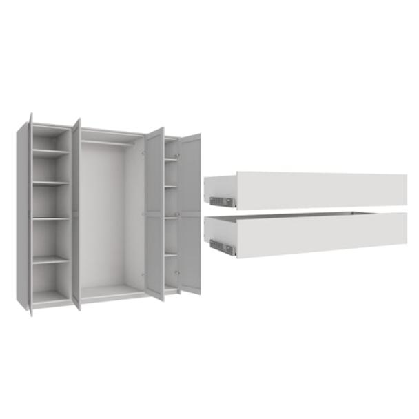 Wickes Ashland Grey Shaker 3 Cabinet Quad Wardrobe with Shelves Rail Plinth Panels 2083 x 2036mm + Wickes Modular Double Wardrobe Drawers 2 Pack