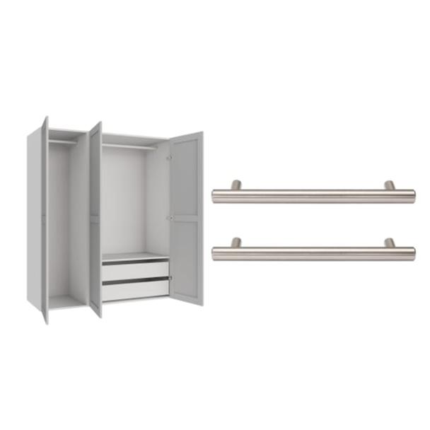 Wickes Ashland Grey Shaker Triple Wardrobe with Shelves Drawers 1800 x 1500mm + Wickes T Bar Brushed Nickel Cabinet Handle 220mm Pack of 2