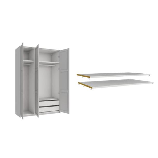 Wickes Ashland Grey Shaker Triple Wardrobe with Shelves Drawers Plinth Panels 2333 x 1536mm + Wickes Modular Double Wardrobe Shelves 2 Pack