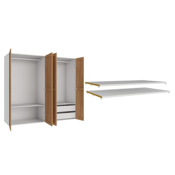 Wickes Ashland Oak Shaker 2 Cabinet Quad Wardrobe with Shelves Drawers 1800 x 2000mm + Wickes Modular Double Wardrobe Shelves 2 Pack