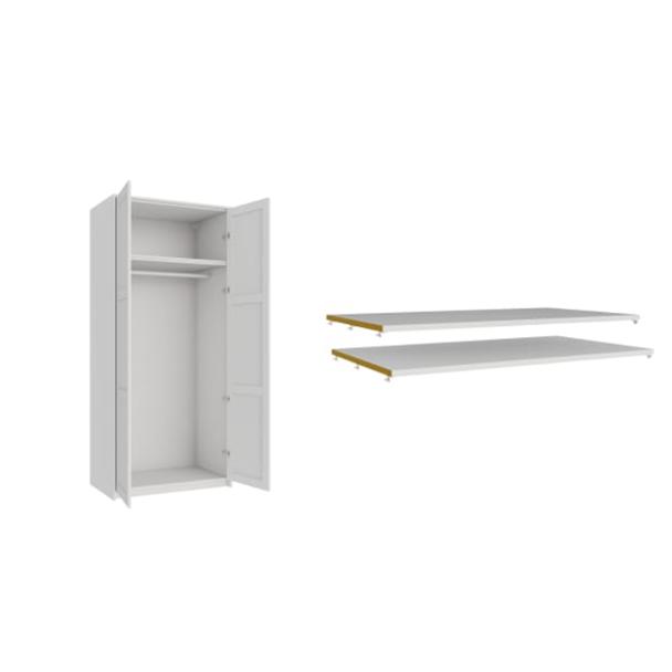 Wickes Ashland White Shaker Double Wardrobe with Rail Plinth Panels 2333 x 1036mm + Wickes Modular Double Wardrobe Shelves 2 Pack