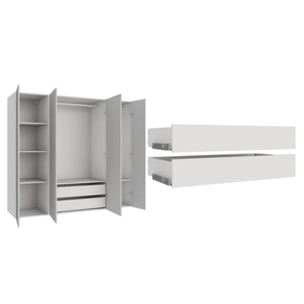 Wickes Claydon Grey Slab 3 Cabinet Quad Wardrobe with Shelves Drawers 1800 x 2000mm + Wickes Modular Double Wardrobe Drawers 2 Pack