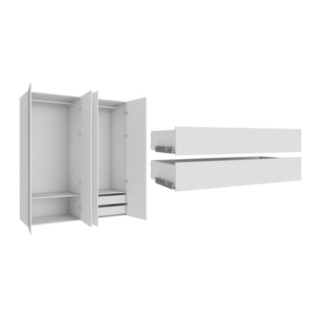 Wickes Claydon White Slab 2 Cabinet Quad Wardrobe with Shelves Drawers 2250 x 2000mm + Wickes Modular Double Wardrobe Drawers 2 Pack