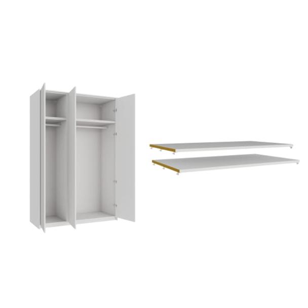 Wickes Claydon White Slab Triple Wardrobe with Rail Plinth Panels 2333 x 1536mm + Wickes Modular Double Wardrobe Shelves 2 Pack