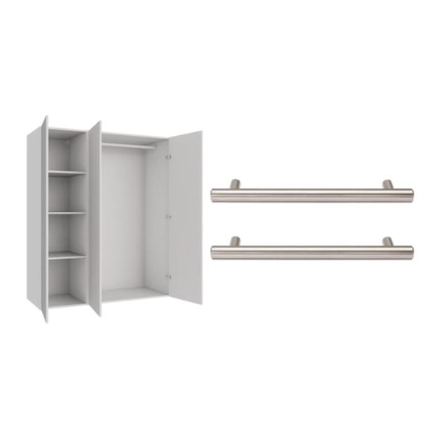 Wickes Claydon White Slab Triple Wardrobe with Shelves Rail 1800 x 1500mm + Wickes T Bar Brushed Nickel Cabinet Handle 220mm Pack of 2