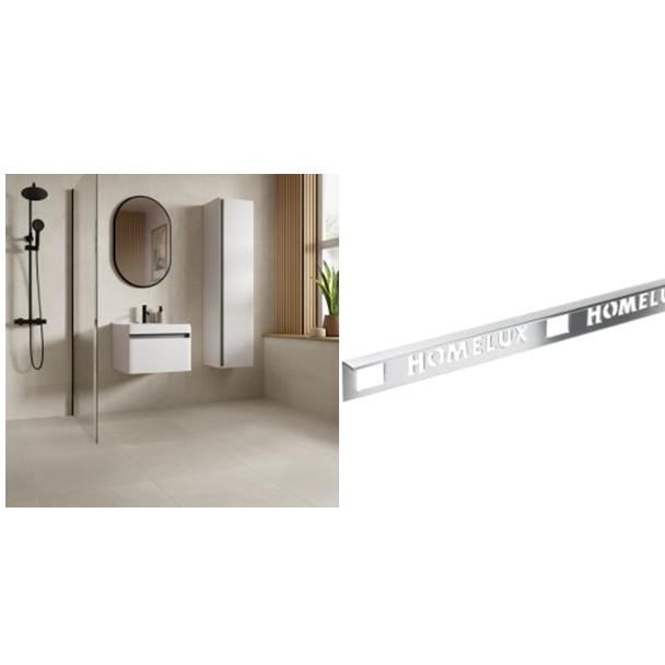 Wickes Lava Bone Matt Glazed Porcelain Wall Floor Tile 595 x 595mm + Homelux 10mm Metal Straight Silver Tile Trim 2 44m