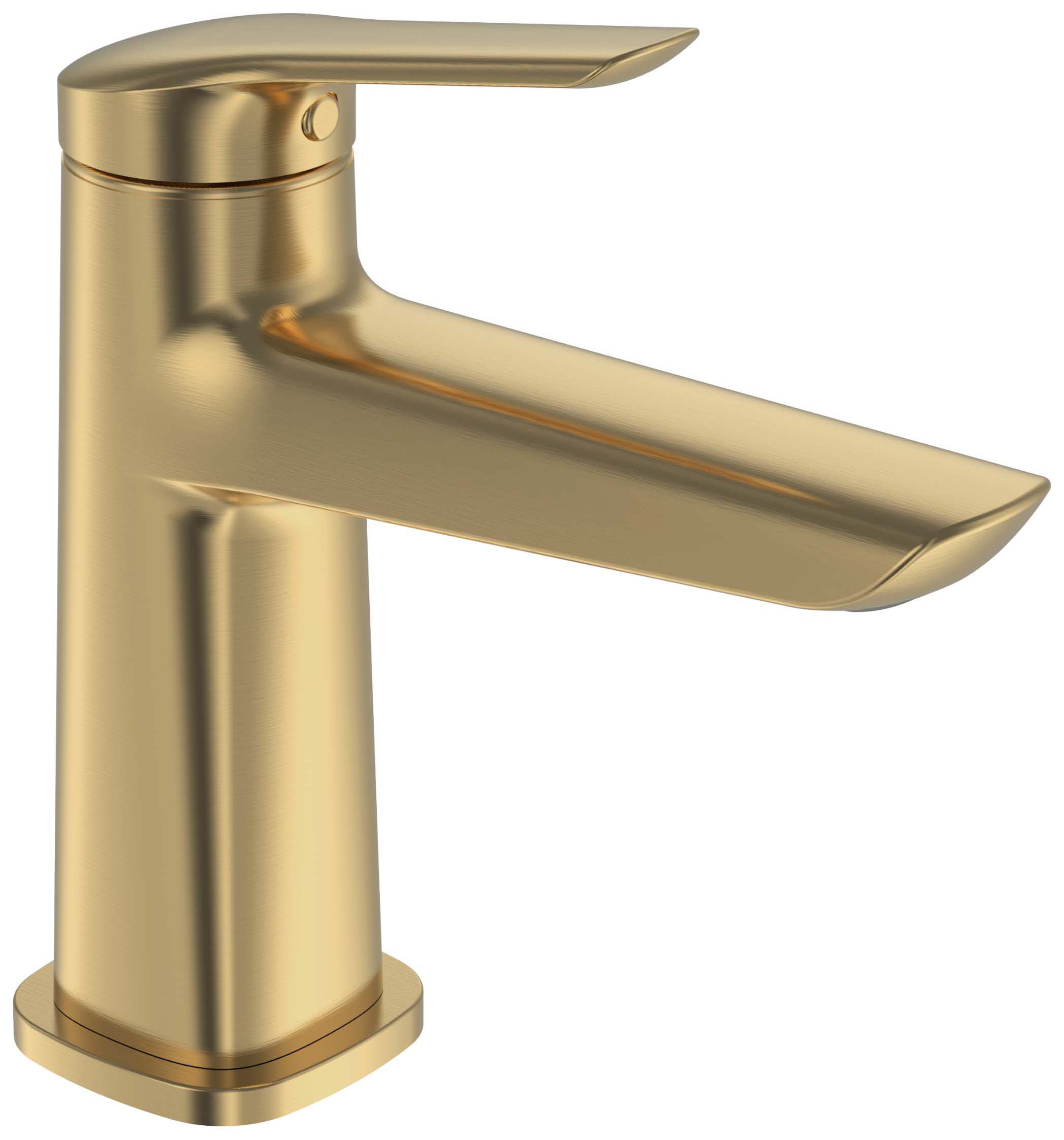 Wickes Mariz Compact Basin Mixer Tap - Brushed Brass - Designed with a sleek lever handle and an elegantly crafted spout, this basin tap allows water to cascade smoothly, creating a calming, waterfall-style flow that perfectly complements any contemporary bathroom. Crafted from high-grade materials for long-lasting performance, it combines reliable functionality with refined aesthetics. The clean lines and modern profile make it an ideal match for minimalist or modern-style spaces.
