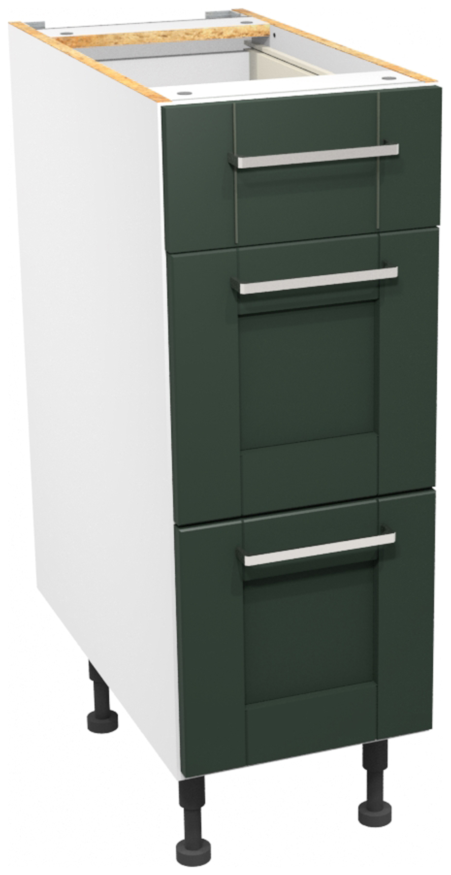 Wickes Ohio Forest Green Shaker Drawer Unit - 300mm - Wickes Ohio Forest Green Shaker Drawer Unit offers a stylish and practical solution for optimising spaces in your kitchen, all presented in a refreshing Forest Green finish. This unit comes supplied with all fixtures and fittings, plus adjustable legs for uneven floor surfaces. Our 'Wickes Lifestyle Kitchens' range of flat-pack kitchens are available for you to assemble and fit whenever suits you.