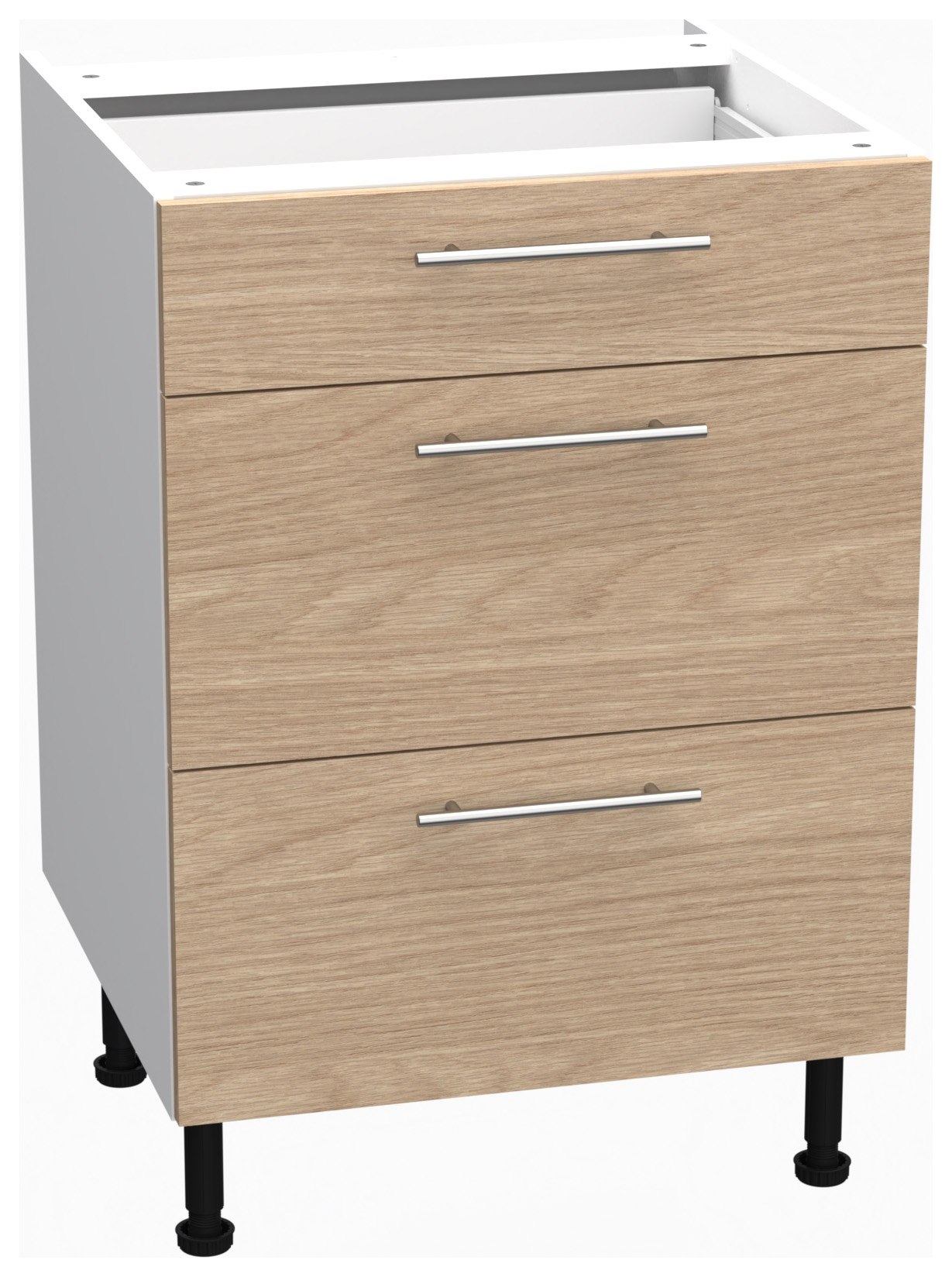 Wickes Orlando Scandi Oak Slab Drawer Unit - 600mm - Wickes Orlando Scandi Oak Drawer Base offers a sleek and modern appearance, perfect for adding a contemporary flair to your kitchen. This unit comes supplied with all fixtures and fittings and adjustable legs for uneven floor surfaces. Our 'Wickes Lifestyle Kitchens' range of flat-pack kitchens are available for you to assemble and fit whenever suits you.