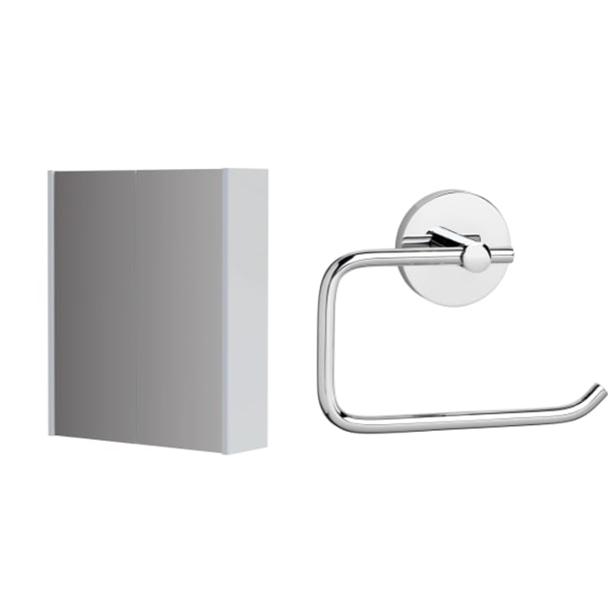Wickes Semi Frameless White Double Mirror Bathroom Cabinet 600 x 500mm + Croydex Flexi Fix Pendle Toilet Roll Holder Chrome