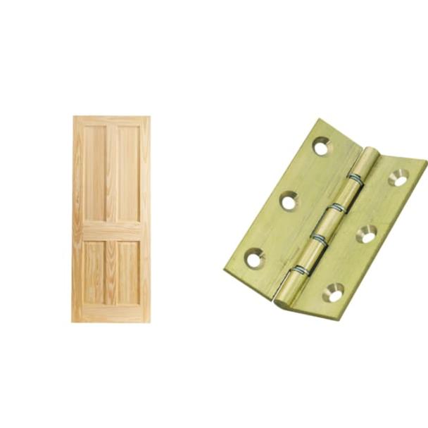 Wickes Skipton Clear Pine 4 Panel Internal Door 1981 x 762mm + Wickes Steel Washered Polished Brass Butt Hinge 76mm Pack of 2