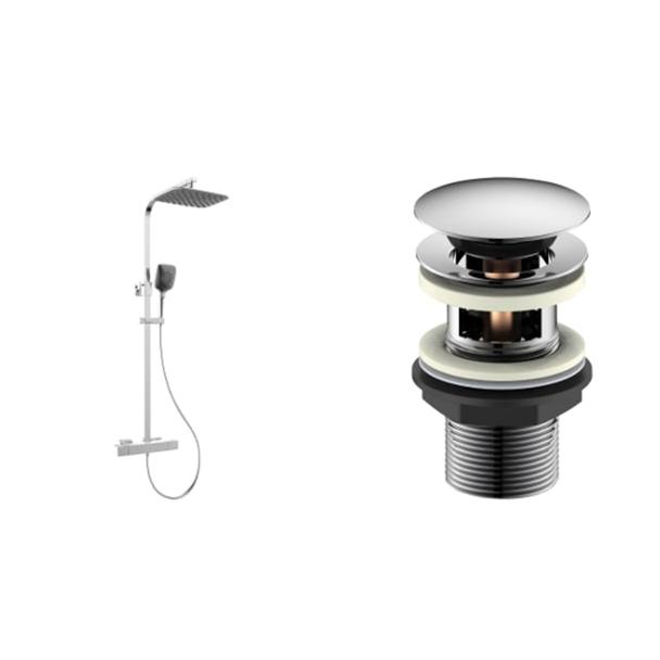 Wickes Supremo Thermostatic Mixer Shower Chrome + Wickes Klick Klack Basin Waste Kit Chrome