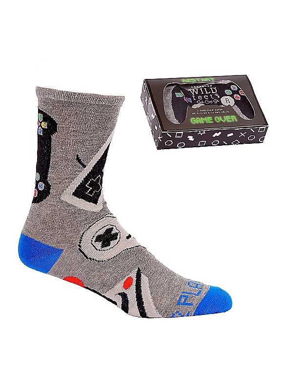 Wild Feet Men's Novelty Games Controller Socks in Gift Box - Grey/Blue