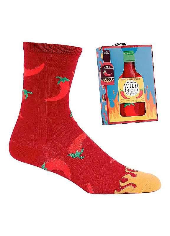 Wild Feet Men's Novelty Hot Sauce Socks in Gift Box - Red/Yellow