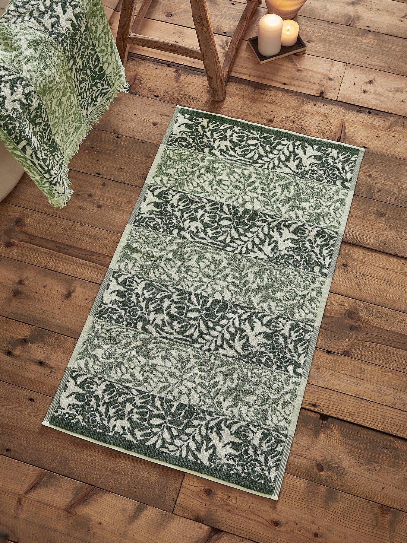 William Morris At Home Rose Stripe 100% Cotton 50X90Cm Bath Mat An Original Drawing Created By William Morris For Wilton Carpets And Registered In 1876 Has Been Translated Into These Beautiful 100% Cotton Towels. The Original Artwork Features A Symmetrical Application Of A Rose Surrounded By Foxgloves. This Design, Held In The William Morris Gallery Archive, Was Faithfully Interpreted Into A Repeating Stripe Pattern By The William Morris At Home Design Team, Capturing The Authentic Essence Of The Artwork In A Unique Form, Woven In Soft Sage Green Yarns And Finished With A Decorative Fringed Edging, These Towels Are Perfect For Bringing The Beauty Of Nature Into Your Bathroom. Depth: 1 Cm 100% Cotton. Bath Mat 950Gsm Height: 50 Cm Washing Instructions: Machine Washable Width: 90 Cm