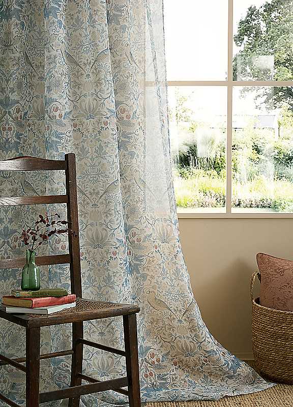 Designed in 1883, William Morris iconic Strawberry thief print is inspired by the thrushes that crept under the strawberry nets in his garden. Digitally printed onto this beautiful sheer voile in a palette of soft blues, naturals and hints of warm red. Composition 100% PolyesterDo not ironMachine Washable at 30°C100% Polyester
