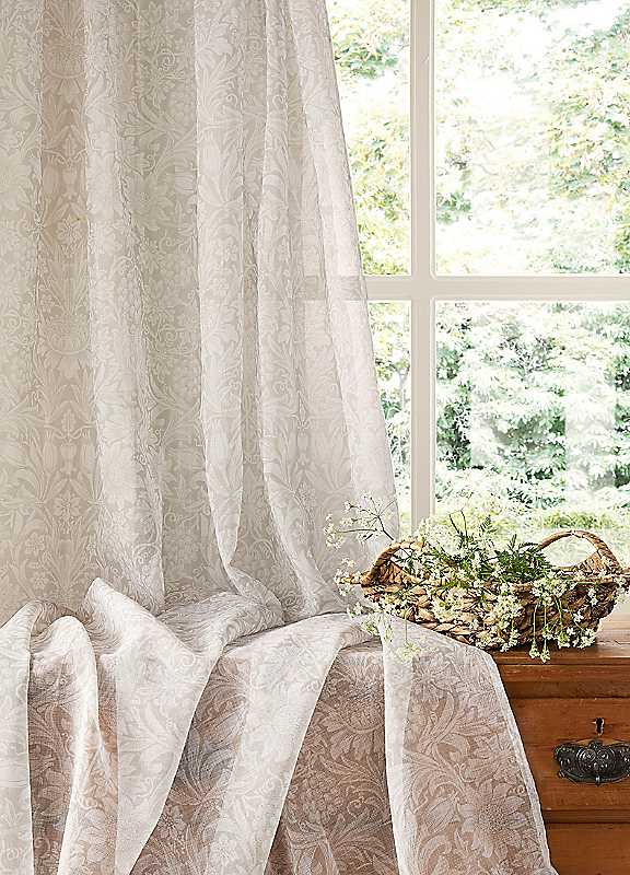 William Morris decorated his own gardens with Sunflowers which inspired his iconic Sunflower design. This elegant, symmetrical design features Sunflowers, tulips and grape vines. Digitally printed onto soft sheer voile in a beautiful linen colour palette, this sheer voile panel will bring timeless elegance to your home. Composition 100% PolyesterDo not ironMachine Washable at 30°C100% Polyester